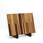 Voor deze langshouten snijplank zijn de volgende houtsoorten gebruikt: eik, esdoorn, beuk, Amerikaanse notelaar, tigerwood en padoek. Het contrast tussen lichte en donkere houtsoorten + de dualiteit geeft NIBUN zijn unieke uitstraling.