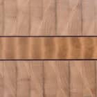 Deze kopshouten snijplank heeft een lichte, klassevolle uitstraling dankzij de basis in plataan, dat hier zijn zachte rozige tinten en subtiele kopshouttekening laat zien. Dwars over het midden loopt een brede band uit esdoorn, rustig van structuur en helder van kleur, geflankeerd door twee smalle lijnen in purperhart. Die fijne paarse accenten doorbreken het geheel op een elegante manier zonder op te vallen of te overheersen. De afgeschuinde zijkanten maken de plank comfortabel vast te nemen en geven een slanke afwerking.