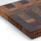 Deze kopshouten snijplank straalt klasse uit dankzij een harmonieuze combinatie van rijke houttinten en een verfijnd patroon. De basis in Amerikaanse notelaar geeft de plank een warme, donkere uitstraling, terwijl eik zorgt voor een subtiel contrast. Accenten van kerselaar en padoek brengen extra levendigheid in het geheel. De kopshouten structuur laat messen tussen de houtvezels glijden, waardoor ze langer scherp blijven en het snijoppervlak zich beter herstelt. Afgeschuinde kanten zorgen voor een comfortabele grip en maken de plank makkelijk hanteerbaar, een duurzame keuze voor wie intensief kookt en waarde hecht aan uitstraling.
