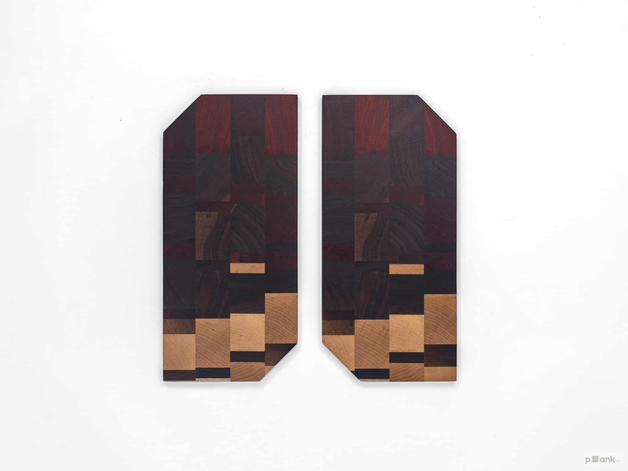 Unieke kopshouten serveerplankjes in een even uniek patroon gevormd uit Amerikaanse notelaar, padoek en esdoorn die samen voor een mooi “ombre” effect zorgen. Ideaal als serveer-, kaas- of ontbijtplankje.