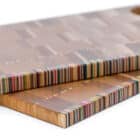 Als accent zijn gelamineerde gerecycleerde skateboards verwerkt, die een kleurdetail toevoegen zonder dominant te worden. Beuk en esdoorn zorgen voor hardheid en stabiliteit, berk brengt lichte frisheid, terwijl kers hier en daar een warmere toets introduceert. Deze combinatie maakt van de plankjes veelzijdige serveerstukken die zowel functioneel als karaktervol zijn. Perfect voor dagelijks gebruik of om iets bijzonder te presenteren.